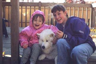 | Pearl Salotto has been a pioneer for the past 2 decades in an effort to professionalize Pet Assisted Therapy (PAT). With prior careers in Special Education and Social Work, Pearl received her certificate in PAT from Mercy College, Dobbs Ferry, NY in 1987. Pearl's reaction in her first PAT job - to the overwhelming response that her beloved pet DJ, then a one and a half year old Samoyed, brought out in individuals who are lonely and ill - was that every institution in the country needs a full time Pet Assisted Therapy facilitator. With that clear focus in mind, Pearl set up a PAT certificate program at the State University of New York at Brockport, and later in Rhode Island. Maj-En, who joined the family as an eight week old puppy in 1995 and had his PAT debut at a school in Woonsocket in May 1996, became Pearl's best friend and endless inspiration as she persevered into the second decade of this important work. Pearl has worked on many fronts trying to enhance public awareness about the positive impact of pets in all of our lives and about the need to set educational and ethical guidelines and standards, to not only spread programs, but to protect all concerned, the clients and the therapy pets.