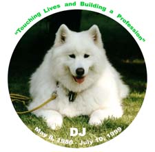D.J., DOG OF JOY, recently passed away peacefully within the loving arms of her family. The smiling face of this big white dog is synonymous with professional Pet Assisted Therapy (PAT), locally and nationally, because of the countless people of all ages whose lives she touched, because of the many programs, as well as social reform initiatives that she inspired, because of the many dreams that she helped turn into reality.